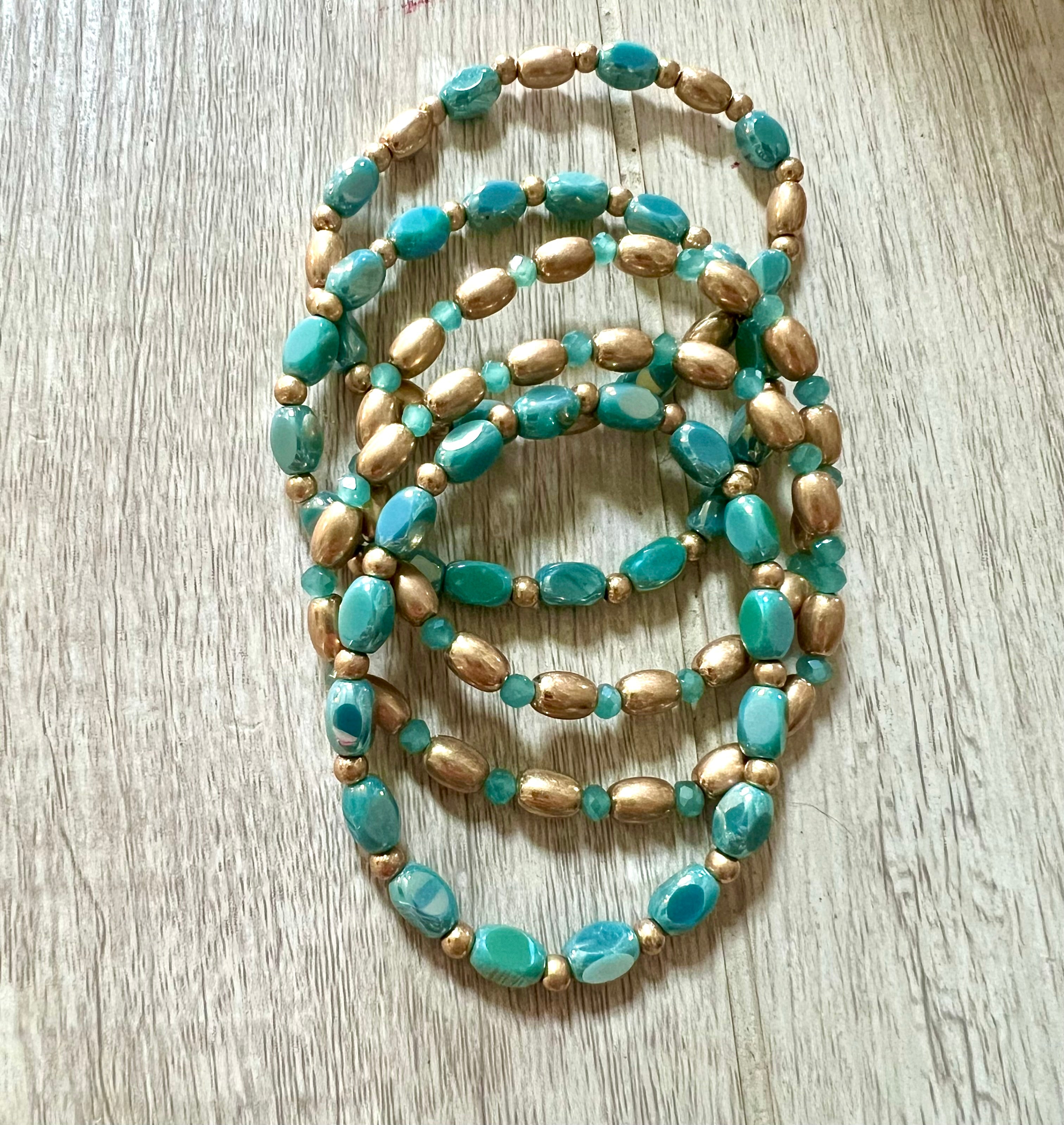 These elegant and gorgeous stretch bracelets will add the little extra to any look! Gorgeous gold and turquoise, they are total show stoppers.