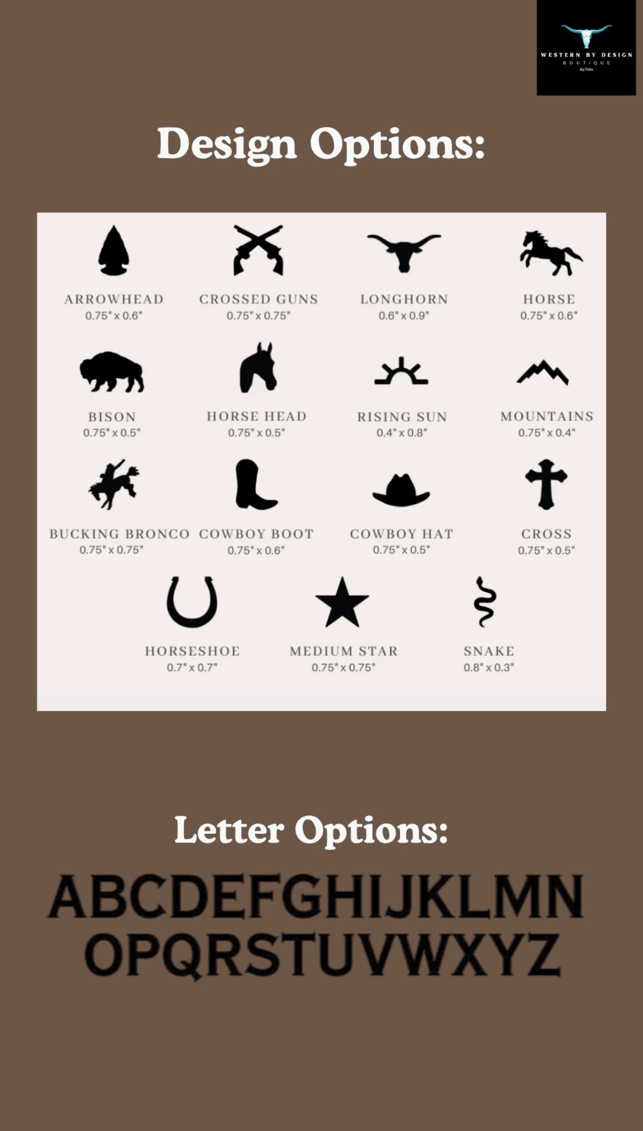 • Sizing is inches from end to middle belt hole