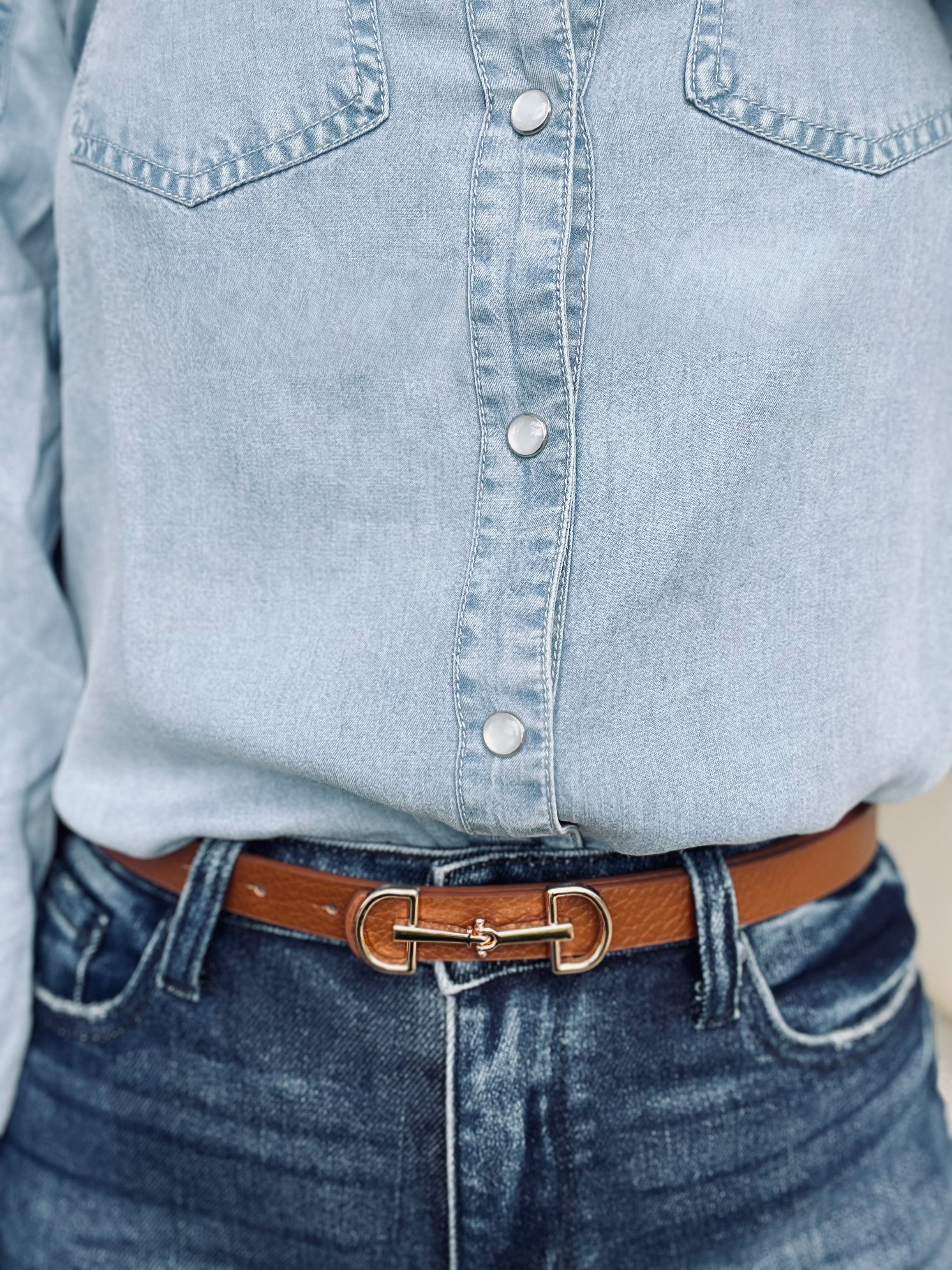 This D-Ring Buckle Belt is western and fashionable. We absolutely love it, and it’s available in colors black and brown. 43” length