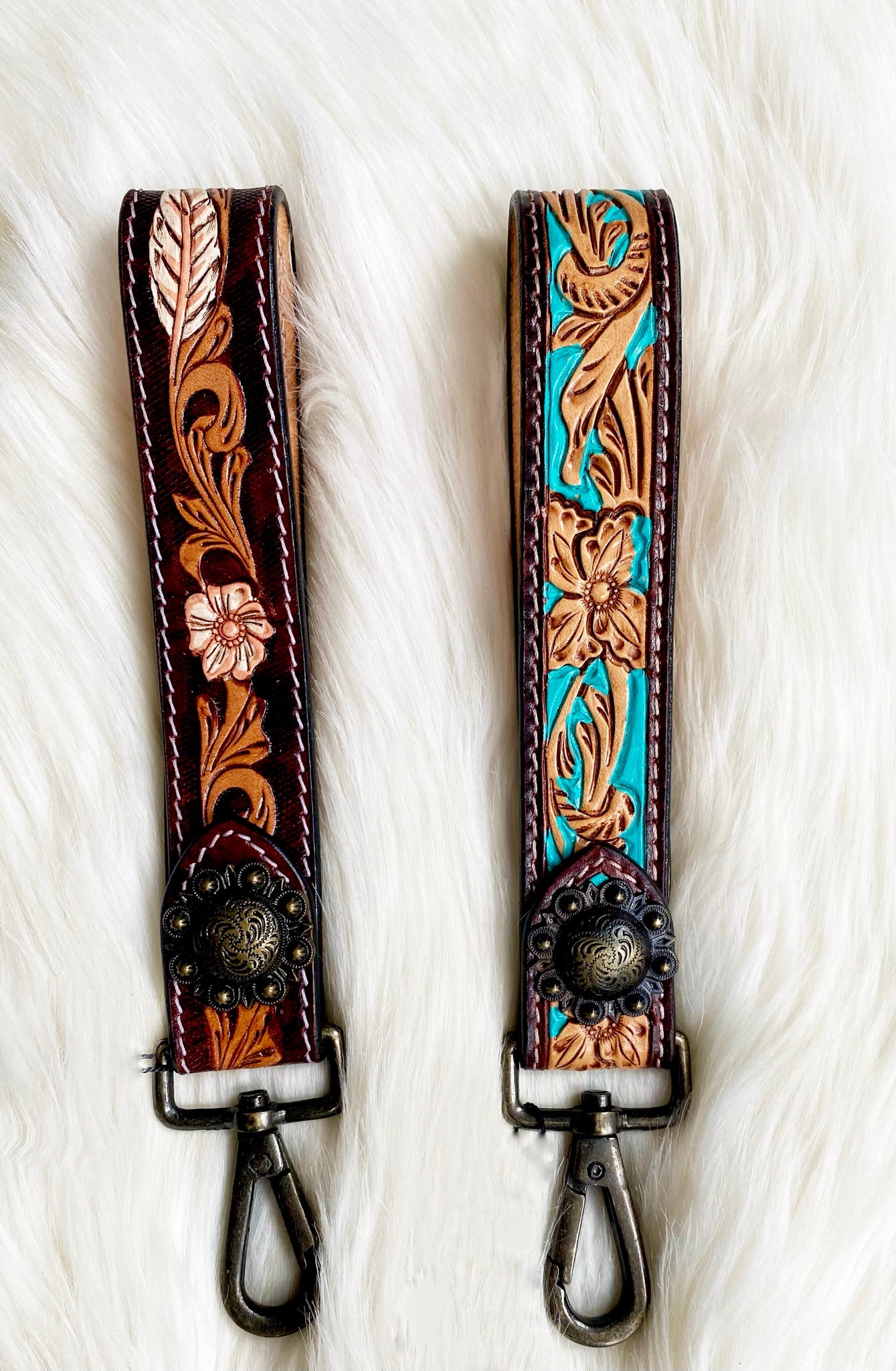 Hand Tooled Keychain {Turquoise & Flower}
